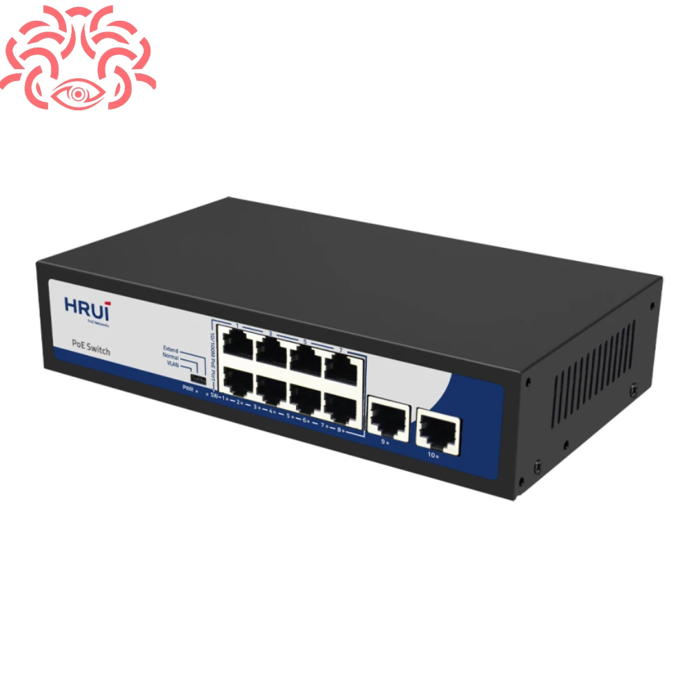 سوییچ 8 پورت اچ آر یو آی مدل HR900-AF-82GN یک دستگاه پی او ای هوشمند است که دارای 8 پورت 10/100 مگابیت و 2 پورت Uplink گیگابیت بوده و برای شبکه های نظارتی، دوربین های مداربسته و تلفن های IP استفاده میشود. این سوییچ از استاندارد های POE و POE+ پشتیبانی کرده و توان خروجی کل آن به 120 وات میرسد، بنابراین قادر است تا همزمان برق و داده مورد نیاز دستگاه های شبکه را تامین کند.