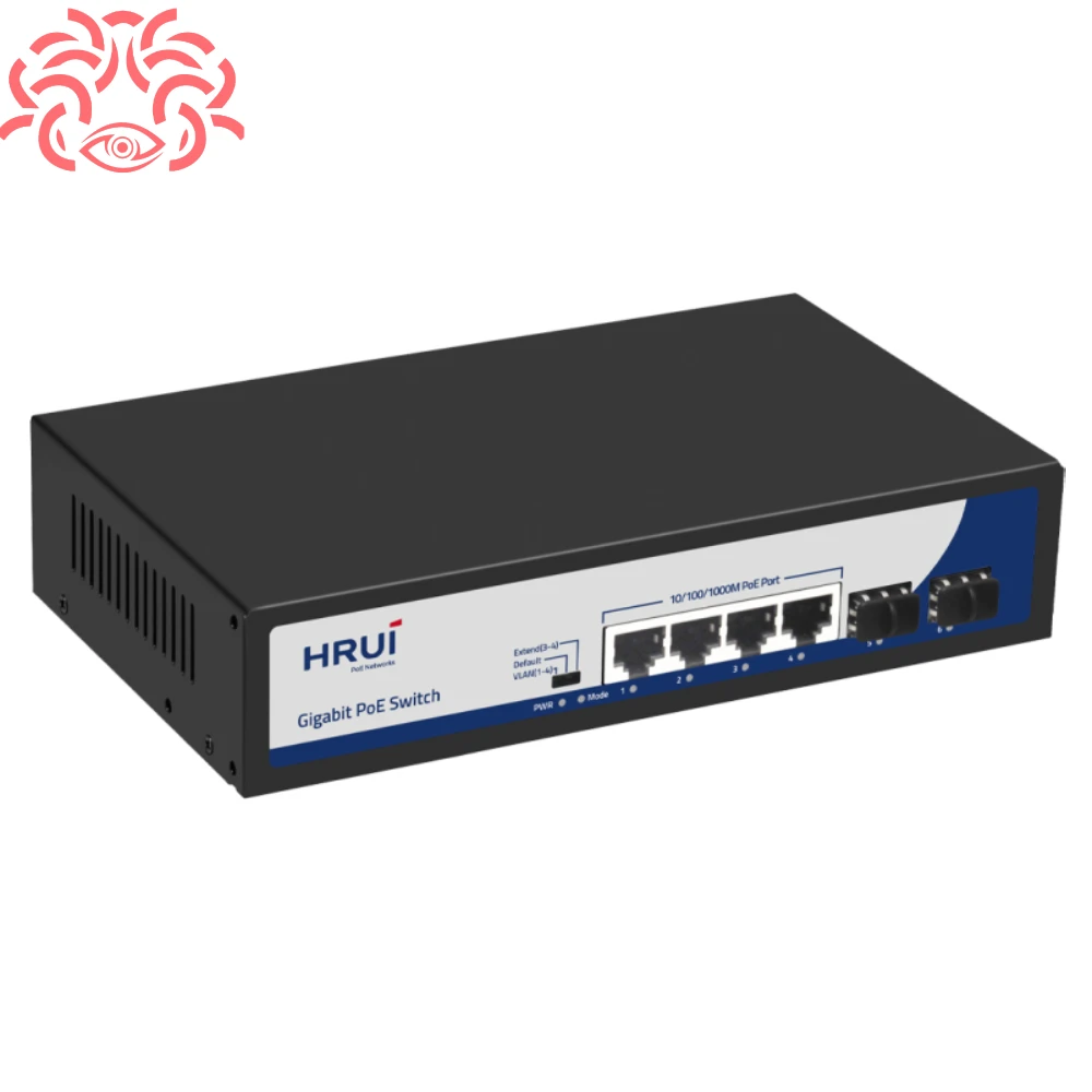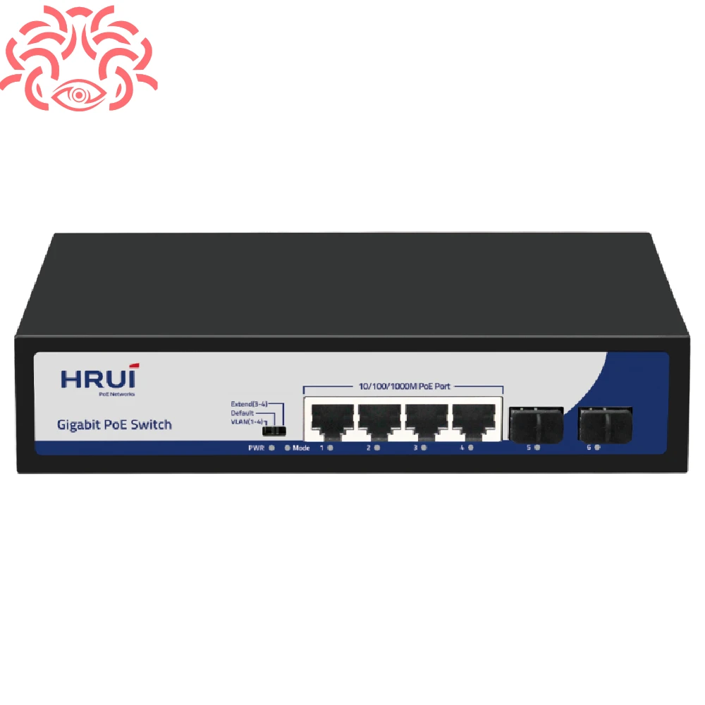 یکی دیگر از سوئیچ های POE 4 پورت HRUI حرفه ای که به شما علاوه بر 4 پورت پی او ای، 2 پورت آپلینک SPF نیز خواهد داد، سوییچ HR900-AFG-42NS-120 میباشد که در حال حاضر در مجموعه مدوسا دوربین موجود شده و شما میتوانید با ارزان ترین قیمت، آن را به صورت مستقیم از واردکننده اصلی خریداری نمایید.